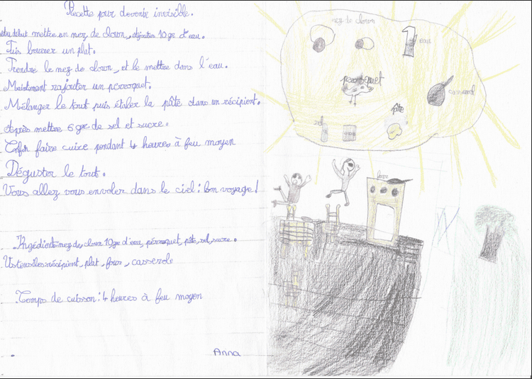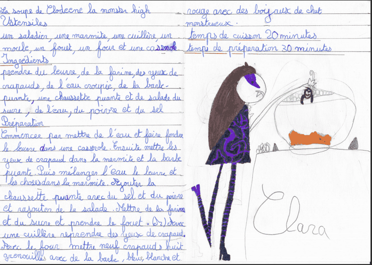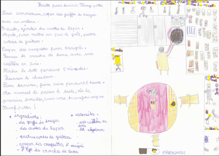Les ce2 ont participé au concours de la meilleure recette fantastique: ils ont imaginé; rédigé; illustré leur recette.